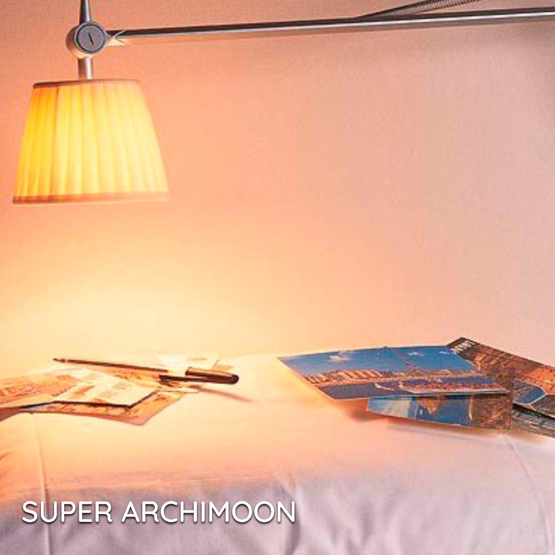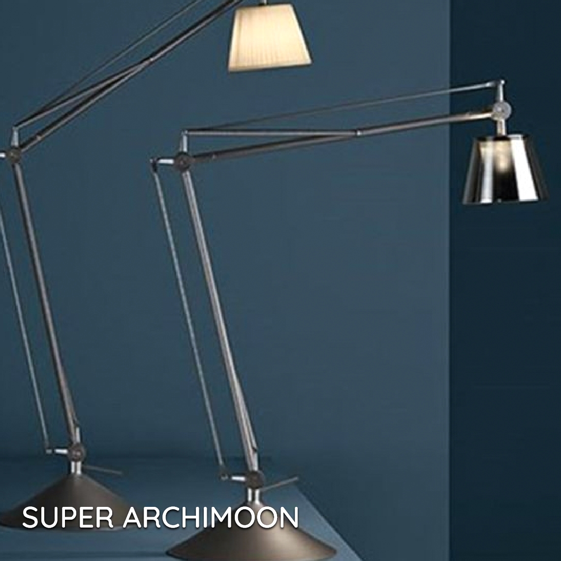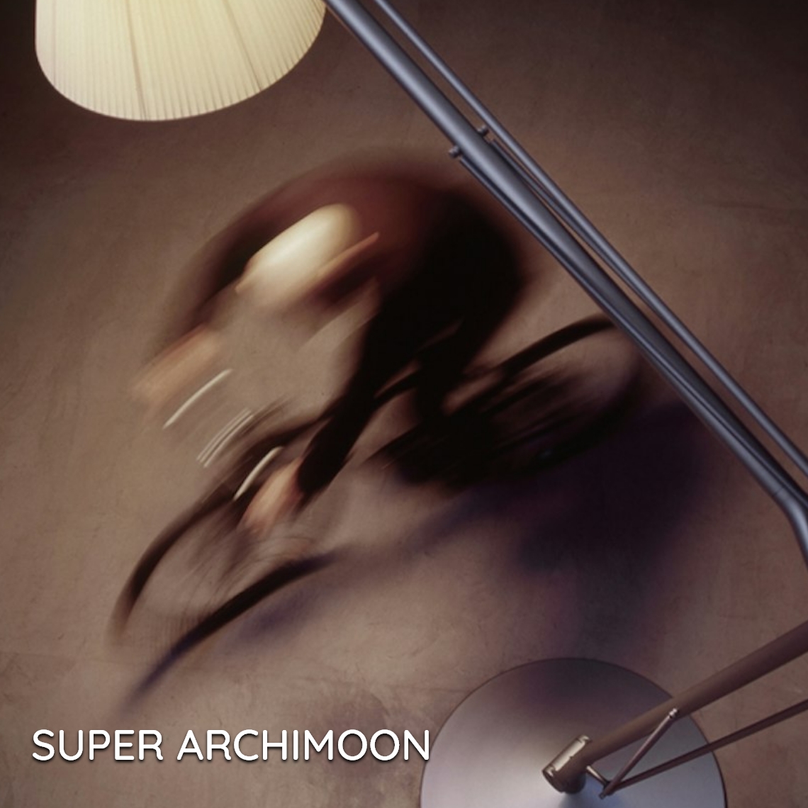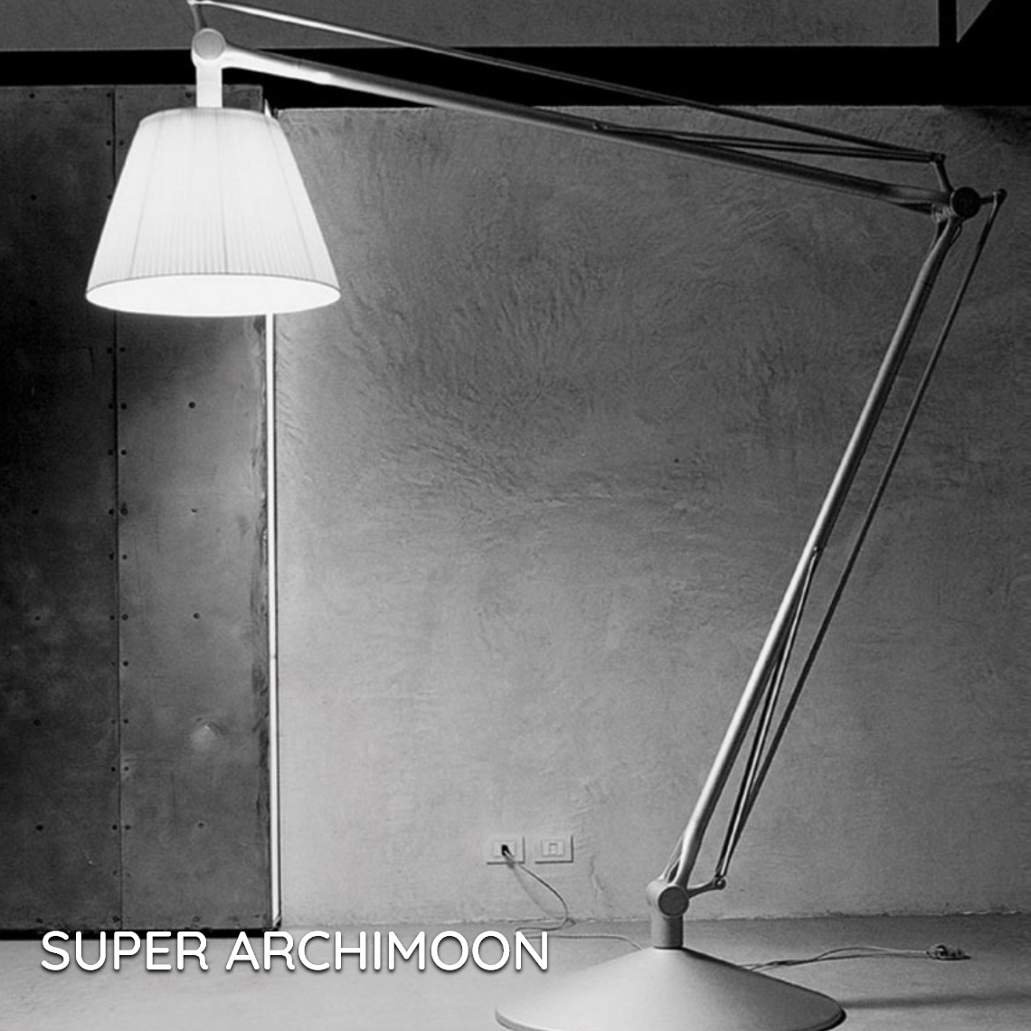 Concludiamo questo viaggio raccontandoti di Superachimoon, di Flos, nata dal genio di Philippe Starck. Questa favolosa lampada da terra in chiave monumentale reinterpreta ancora una volta il lighting design.