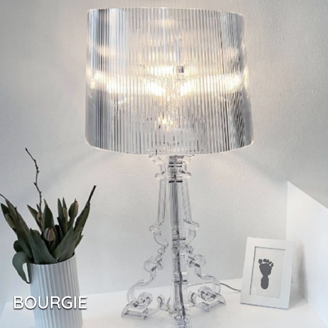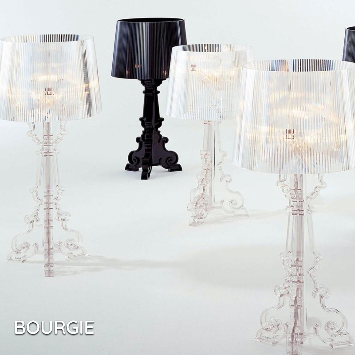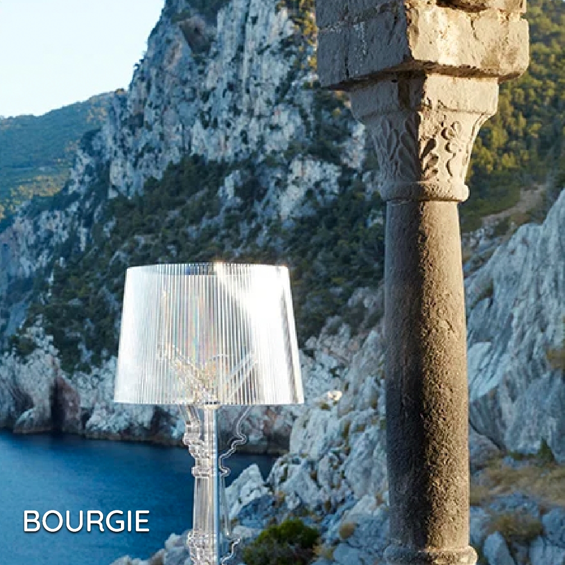 Nel 2004, il maestro Ferruccio Laviani progetta per Kartell Bourgie. Bourgie è una lampada che fonde il passato con il futuro. La sua base in stile barocco e il paralume plissé creano giochi di luce raffinati, mentre il sistema modulabile consente di scegliere diverse altezze.