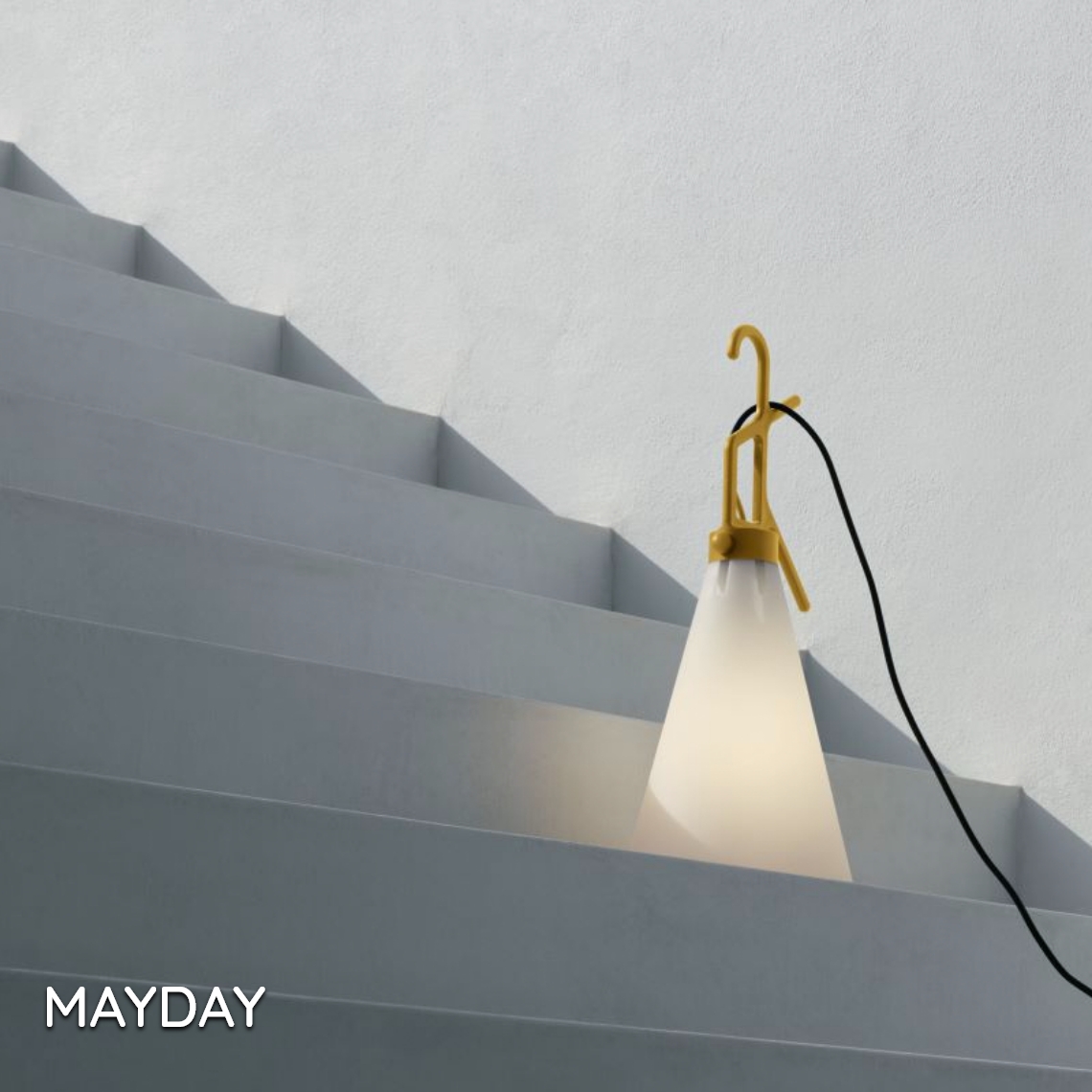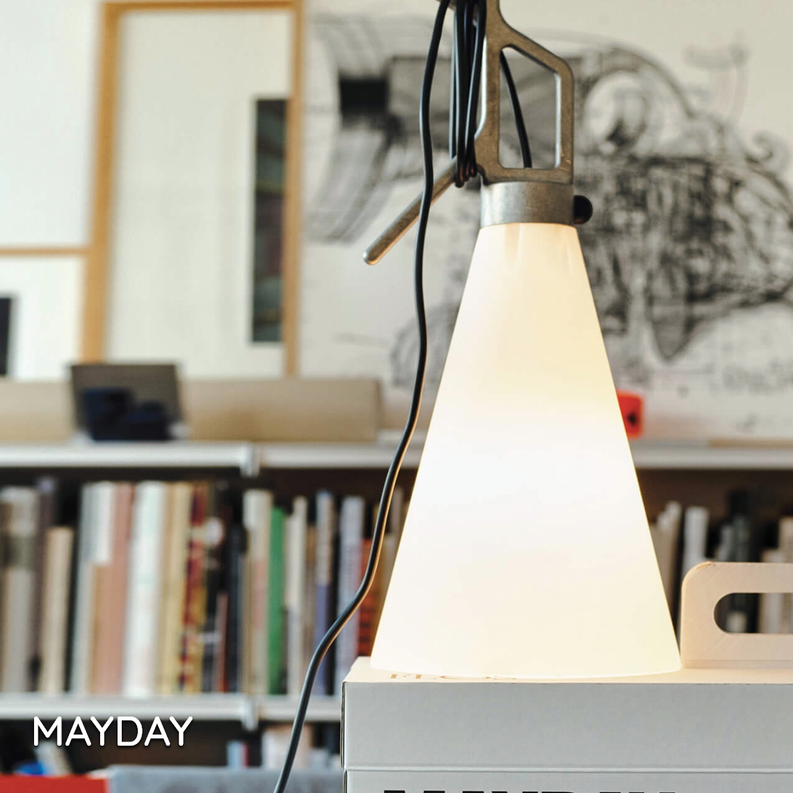 Tra le creazioni più rappresentative degli anni 2000, nel settore dell’illuminazione, spicca Mayday di Flos, firmata da Konstantin Grcic. Questa protagonista indiscussa della zona living è un apparecchio multiuso che ha rivoluzionato il modo di concepire una lampada, grazie al suo gancio/maniglia che funge anche da avvolgicavo e al diffusore in polipropilene sostenibile, ricavato da scarti industriali.