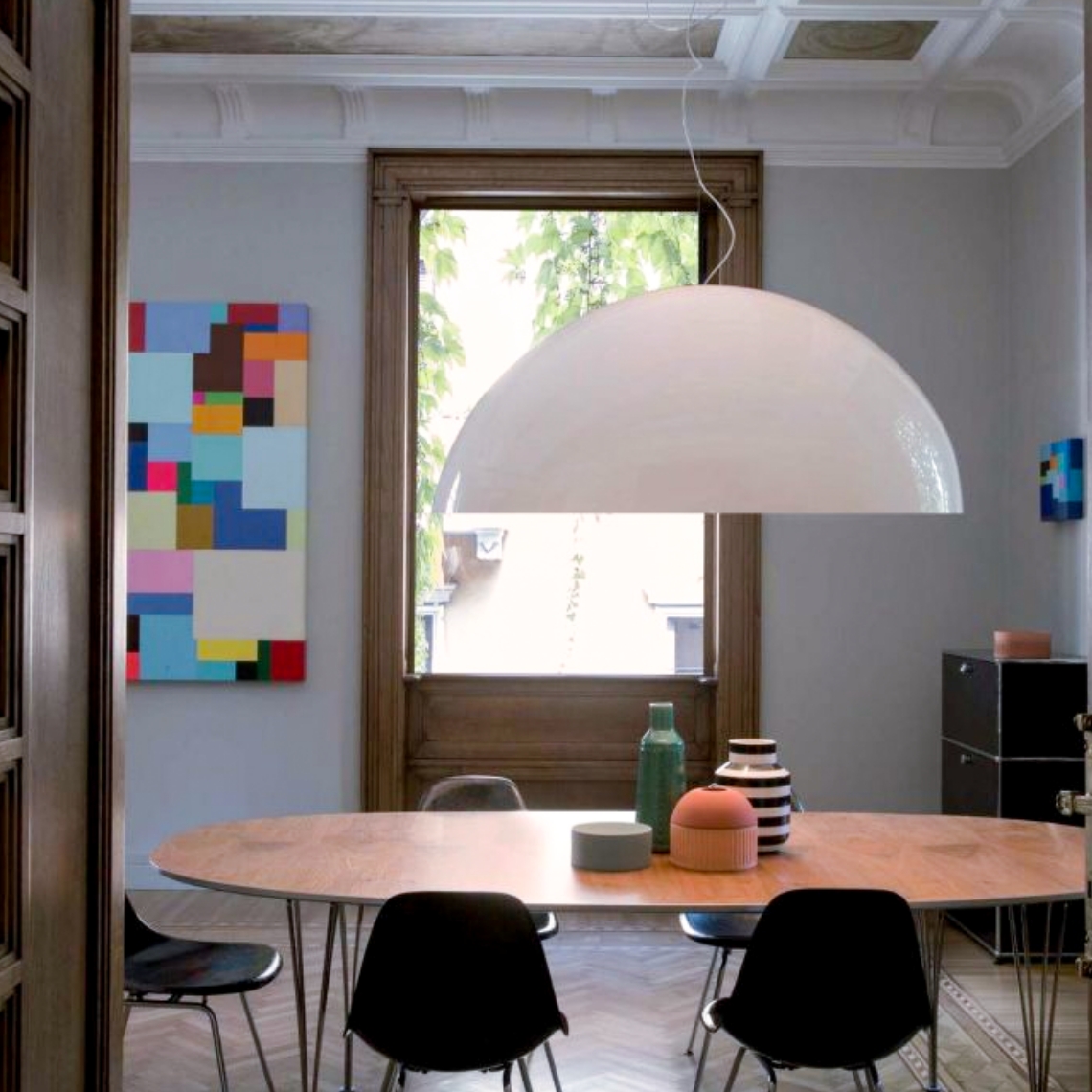 La lampada Atollo è assolutamente figlia del design anni ’70, avendo radicalmente rivoluzionato la concezione tradizionale dell'abat-jour, come la Up5 e la collezione Bambole hanno fatto per il mondo delle sedute.