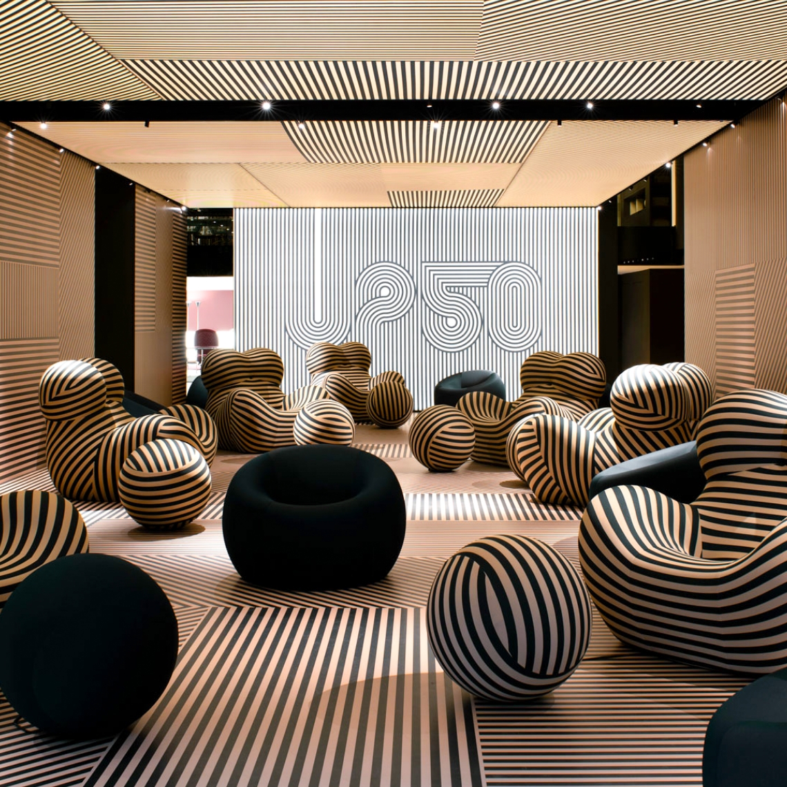 Nel fervore creativo di quegli anni, questa poltrona non è semplicemente un pezzo di arredamento, ma un manifesto culturale. La UP5, infatti, con le sue linee avvolgenti e la sua silhouette, che ricorda la forma femminile e abbinata al pouf che sembra quasi una catena, trasmette un messaggio potente e intriso di metafore: la donna dell'epoca come prigioniera delle convenzioni sociali, legata ad un destino non scelto, il pouf.