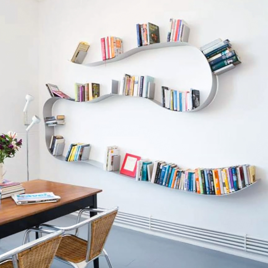 Una libreria sinuosa, che assume la forma desiderata, senza per questo comprometterne resistenza e funzionalità. Disponibile in tre diverse lunghezze, Bookworm è segnata da una serie di supporti ferma libro e unisce flessibilità ed alta resistenza permettendo un carico di circa 10 kg per ogni supporto.
