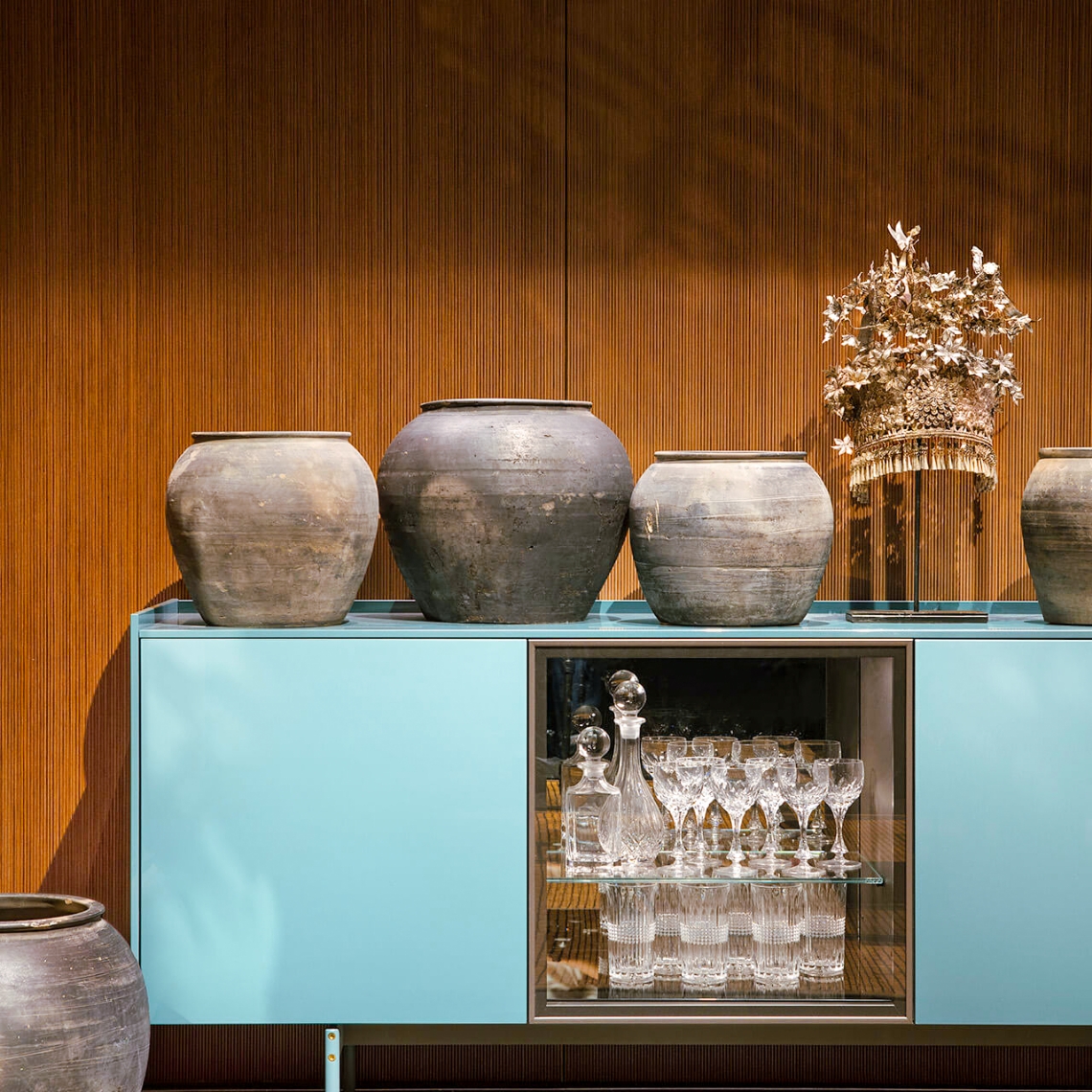 Con riferimento all’attenzione ai dettagli, combinata all’utilizzo dei materiali, a farla da padrone sono state la raffinatezza delle boiserie in legno cannettato e l’innovazione e la creatività dei laminati texturizzati, in grado di donare uno stile unico e inimitabile.