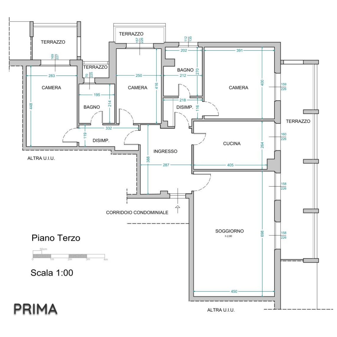 Nel dettaglio, il cliente, che aveva acquistato l’immobile come investimento, ci aveva domandato di trovare una soluzione per massimizzare il valore dello spazio; è stato in quel momento, che con l’attenzione e la passione che ci contraddistinguono, abbiamo visto il potenziale: un appartamento dalla superficie generosa era perfetto per essere suddiviso in due unità distinte – un bilocale e un trilocale – in grado di soddisfare esigenze diverse.