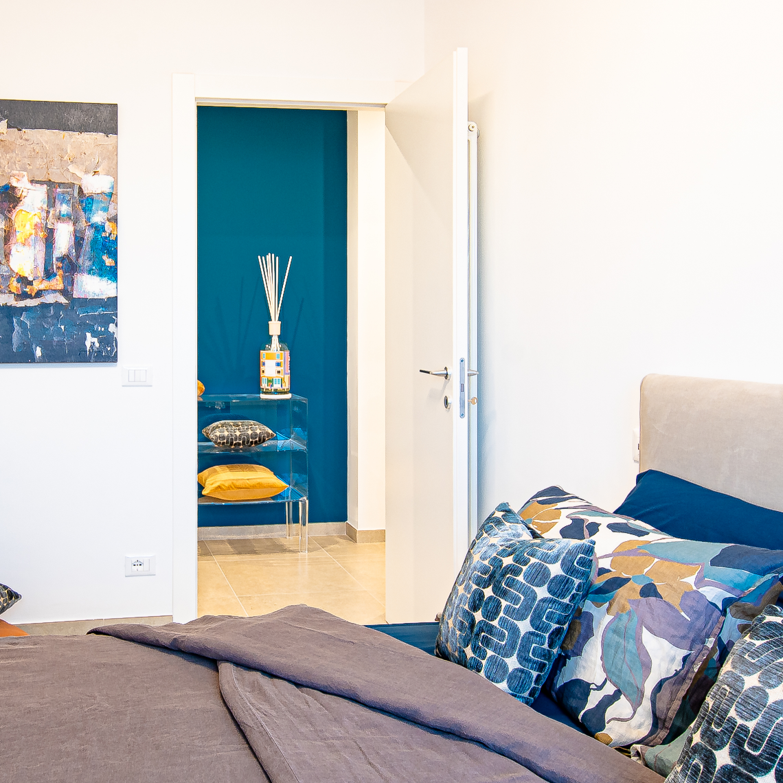 Dal progetto alla scelta degli arredi, ogni elemento è stato pensato per dialogare in armonia con l’insieme. Abbiamo creato una moodboard neutra, giocando con tonalità calde e tessuti morbidi, capace di incontrare i gusti di futuri ospiti e rispettare le tendenze contemporanee. Ogni colore, ogni finitura, ogni complemento ha raccontato l’attenzione e la cura che dedichiamo a ogni progetto; come sempre, nulla è stato lasciato al caso, perché tra le cose che ci distinguono crediamo che il design sia fatto di dettagli.