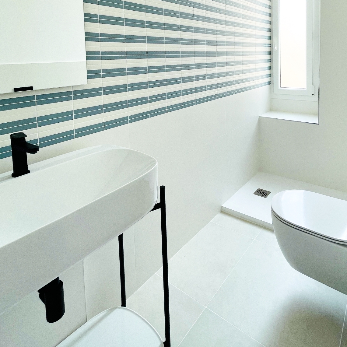 Consapevoli di come un bagno ben organizzato può davvero fare la differenza nell’aspetto e nella funzionalità di una casa e cogliendo l’esigenza dei clienti di sfruttare al meglio e più spesso la propria abitazione estiva, ci siamo impegnati con attenzione e dedizione ad una consulenza puntuale, una sfida spaziale e stilistica, che, come anticipato, ha portato alla creazione di due stanze distinte, una vera e propria sala da bagno con tutti i sanitari e un grazioso bagnetto di servizio.