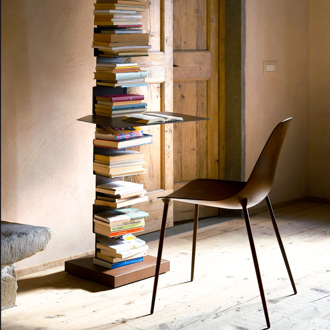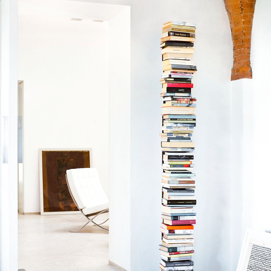 La variante da muro della Ptolomeo differisce dall’originale solo per la base. Questa colonna in metallo è una soluzione di libreria versatile e unica, in grado di creare colonne di libri in equilibrio tra pavimento e soffitto. Le mensole a forma di C scompaiono una volta riempite, mettendo ancora una volta in risalto i protagonisti indiscussi: i libri. Questa favolosa variante è l’ideale per chi dispone di poco spazio e vuole sfruttare l'altezza della stanza. Ptolomeo Wall può essere utilizzata per creare colonne di libri praticamente infinite, adattandosi a qualsiasi tipo di ambiente, dagli appartamenti tradizionali ai loft di notevole altezza; una soluzione innovativa e originale per sfruttare al massimo lo spazio verticale.