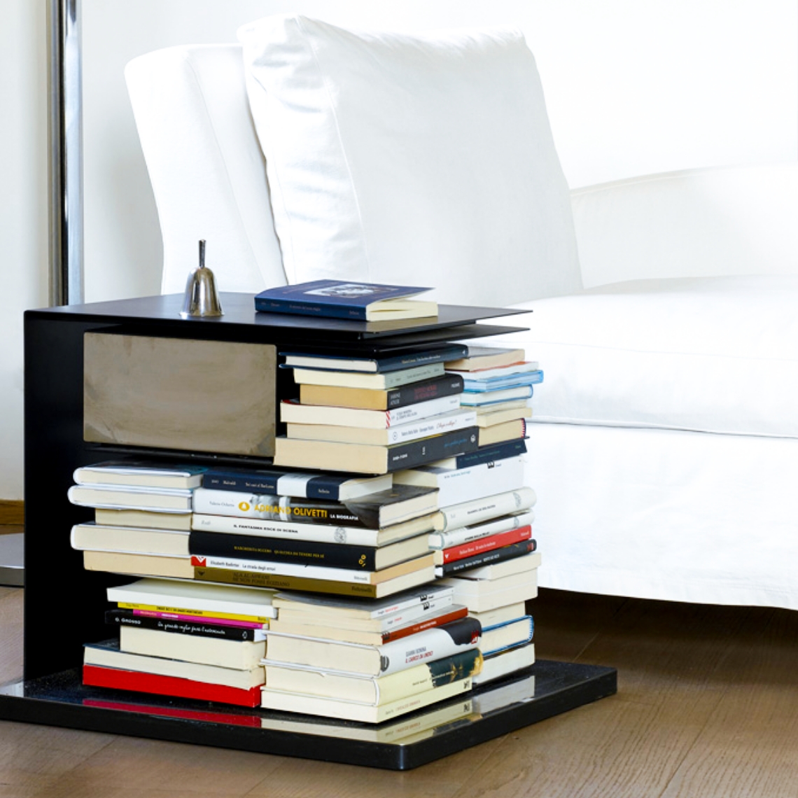 Inoltre, questo mobile autoportante, slanciato e minimale, disponibile in tre diverse altezze, si adatta perfettamente a qualsiasi contesto dai più tradizionali a quelli più contemporanei. Le diverse finiture disponibili, tra cui nero, bianco, acciaio inossidabile ed effetto corten, lo rendono versatile e adatto a ogni tipo di ambiente. Non solo, con la sua forma particolare, può essere facilmente collocato in qualsiasi angolo della casa o dello studio, vicino a un divano o in spazi limitati.