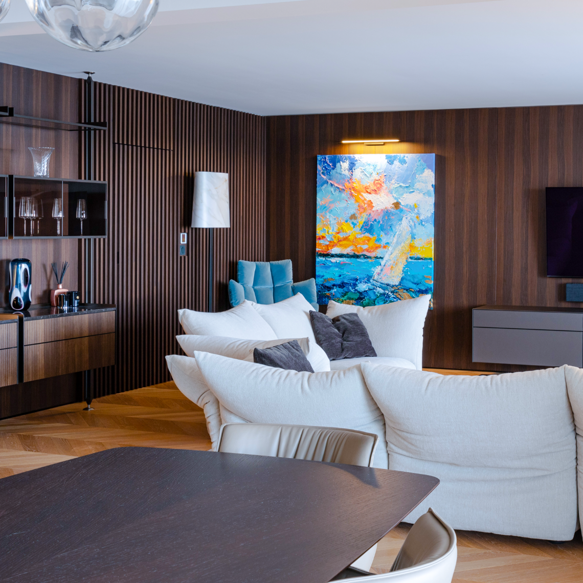 Abbiamo agito nel pieno rispetto del contesto architettonico e paesaggistico della Costa Azzurra, proponendo soluzioni che valorizzassero la luce naturale, i volumi e i punti di vista sull’esterno. Il risultato è un ambiente che riflette la personalità di chi lo abita, ma che mantiene al tempo stesso un’eleganza misurata, in linea con la destinazione d’uso.