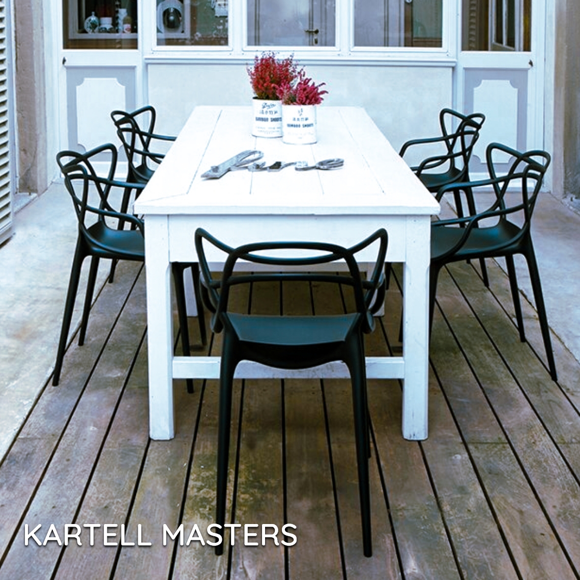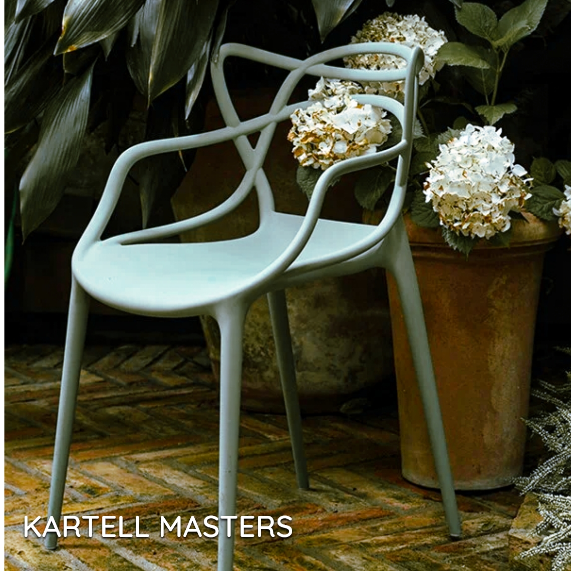 La sedia Masters di Philippe Starck e Eugeni Quitllet per Kartell (2010) è un manifesto di omaggio e reinterpretazione. Ispirata alle icone della "Serie 7" di Arne Jacobsen, alla "Tulip Armchair" di Eero Saarinen e alla "Eiffel Chair" di Charles Eames, la sedia intreccia queste silhouette in un design ibrido e accattivante. Leggera, resistente e perfetta anche per gli esterni, la Masters è un vero e proprio must-have per chi cerca funzionalità e stile.
