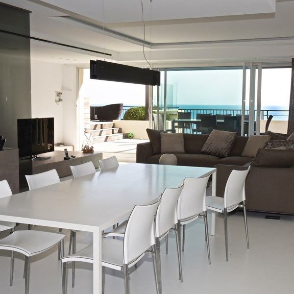 A l'étage supérieur, relié à la terrasse, un espace salon/cuisine très spacieux et lumineux a été créé.