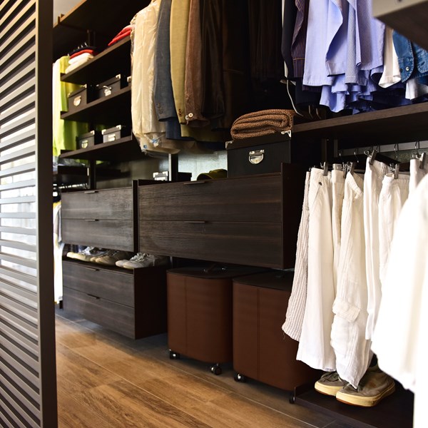 Dans une seule pièce, on trouve des armoires de plain-pied, une chambre à coucher principale et une salle de bains.