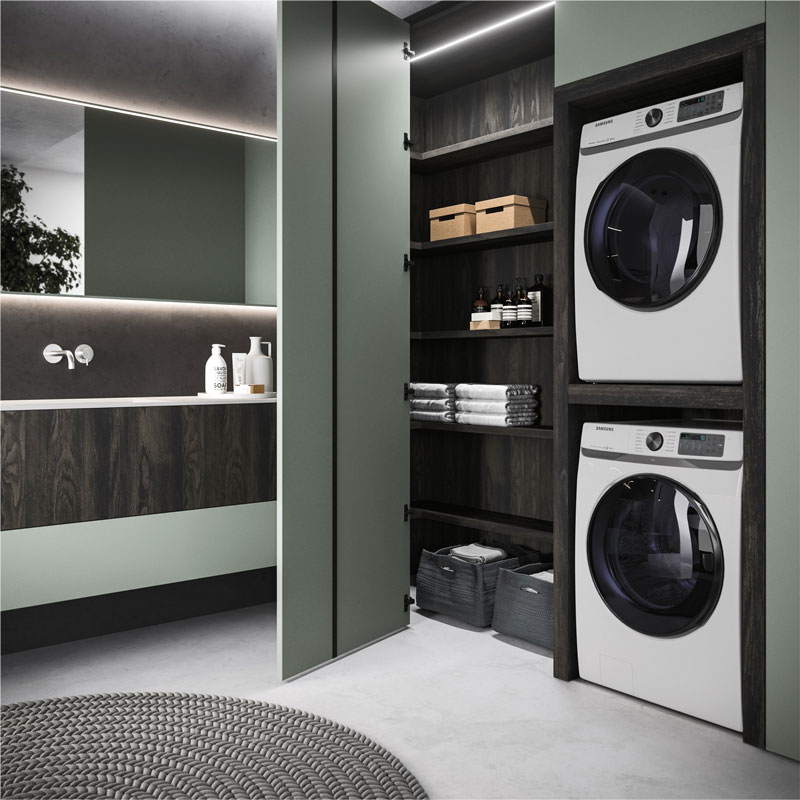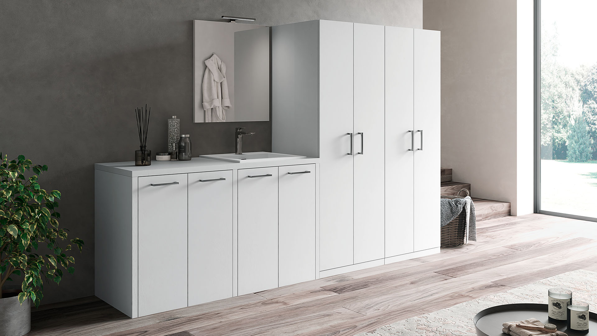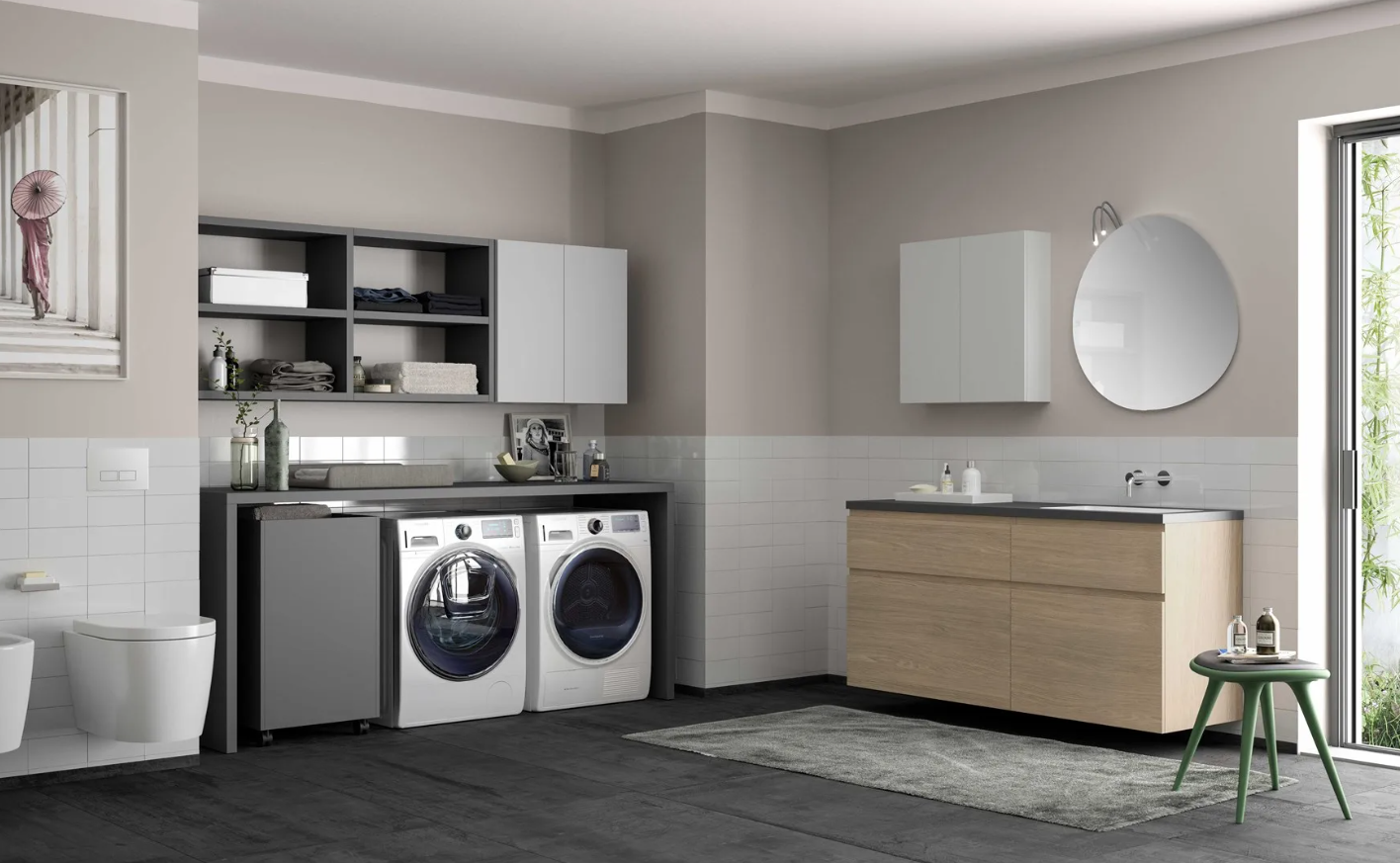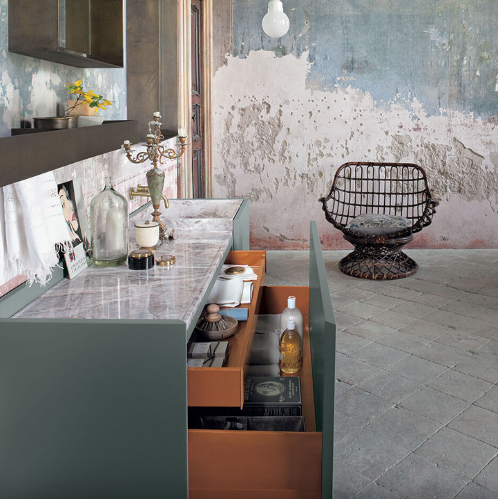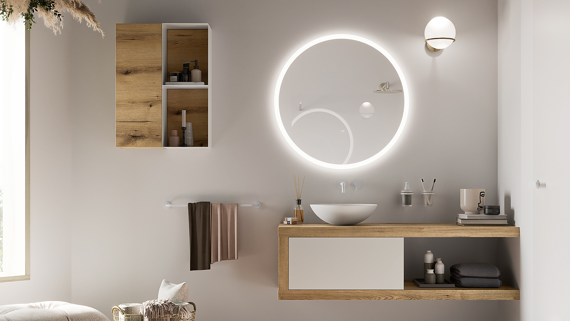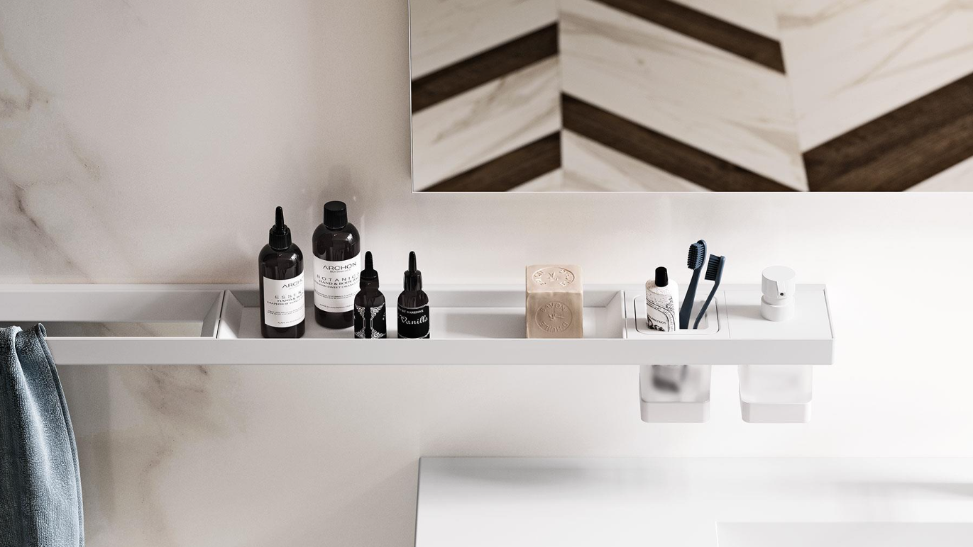 Brand per l'ambiente bagno che, attraverso l'accostamento di materiali e di cromie suggestive, seguono, in ogni dettaglio, le ispirazioni della casa e di chi la abita.