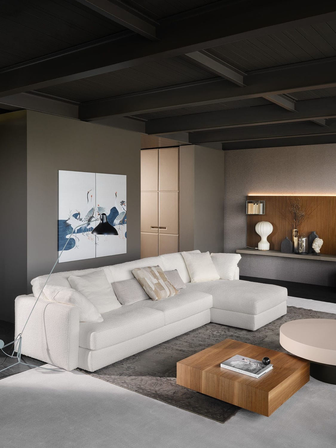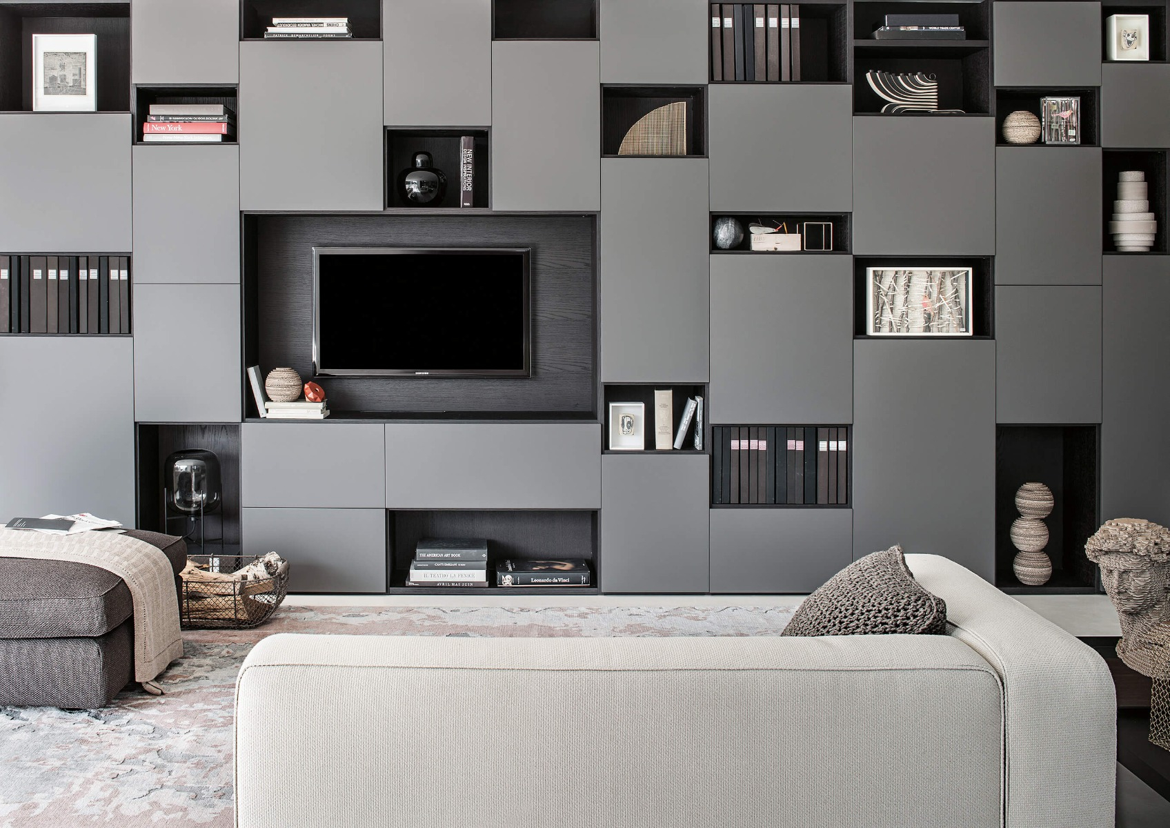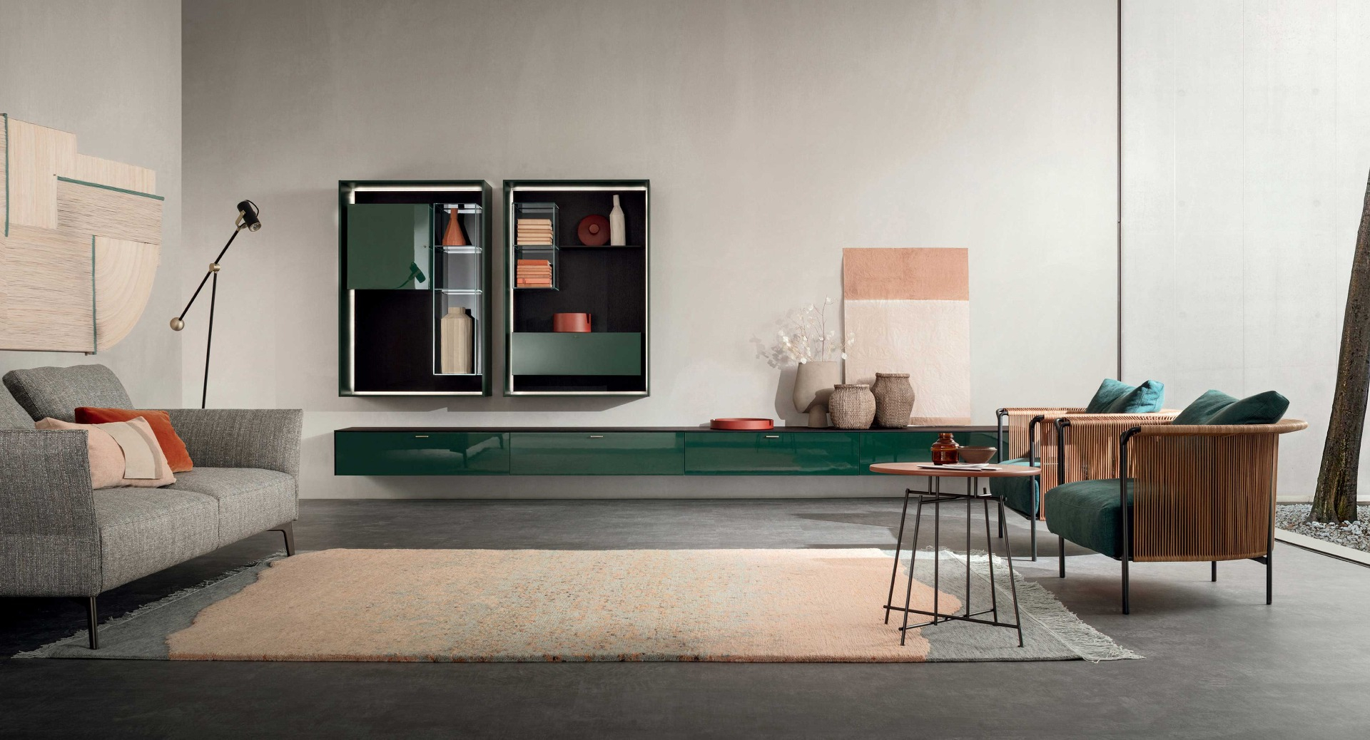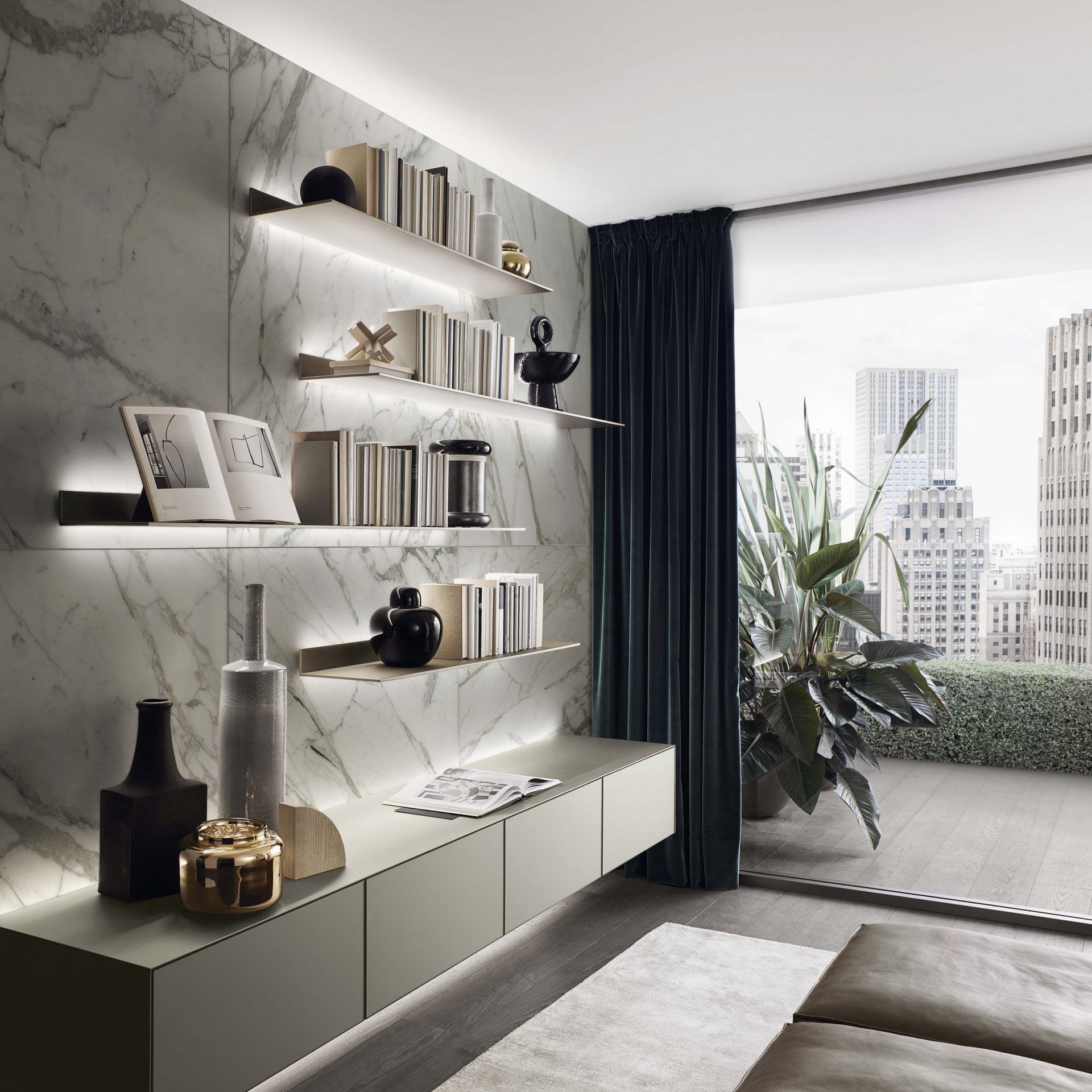 Le pareti attrezzate con scaffalature e ripiani, a giorno o a scomparsa, possono contenere un numero sorprendente di oggetti senza incidere sulla qualità dello spazio. Aree living funzionali dal design razionale che dura nel tempo e si integra con divani e poltrone create con materiali esclusivi e tecnologie d’avanguardia 100% prodotti in Italia.